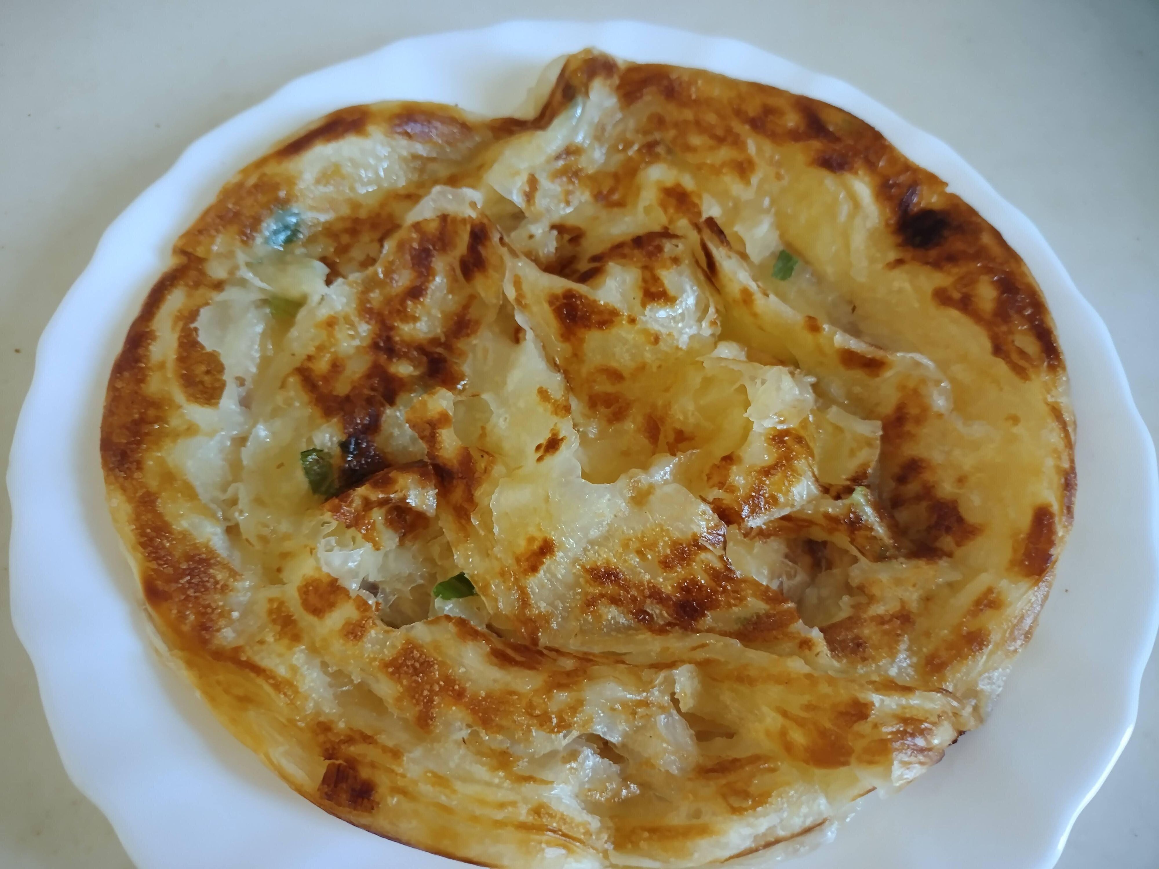 そのままでもおいしいとのことだったので、とりあえず「青ネギ入り」を焼いて塩コショウを振って食べてみました。パッケージには漢字で「餅」と書いてありますが、餅の要素はあまりありません。何層かになっている薄いパイ生地で、ネギが香り、生地はサクサク。部分的にもっちりしていて、シンプルな味わいながら予想以上の味わいです!