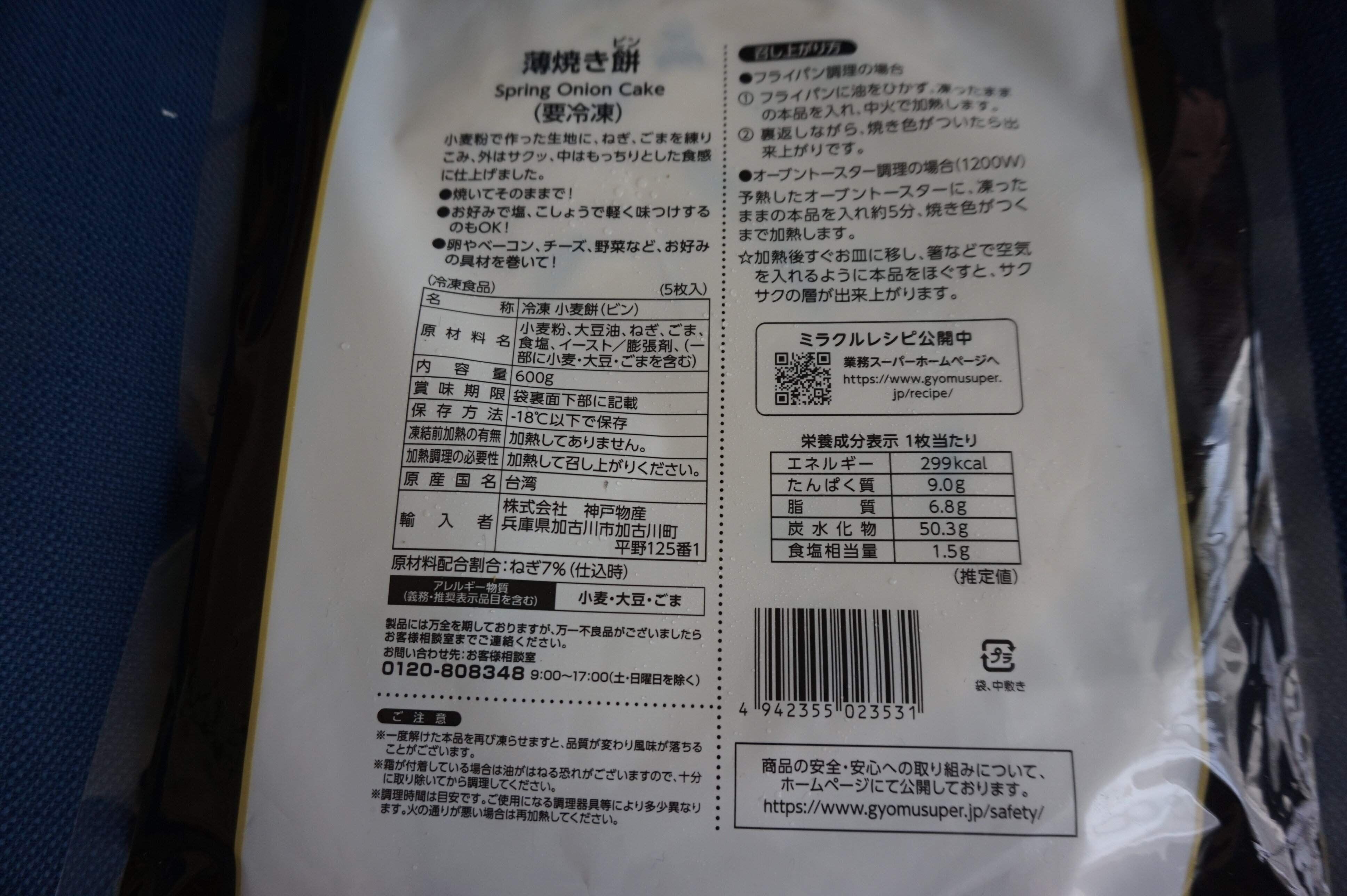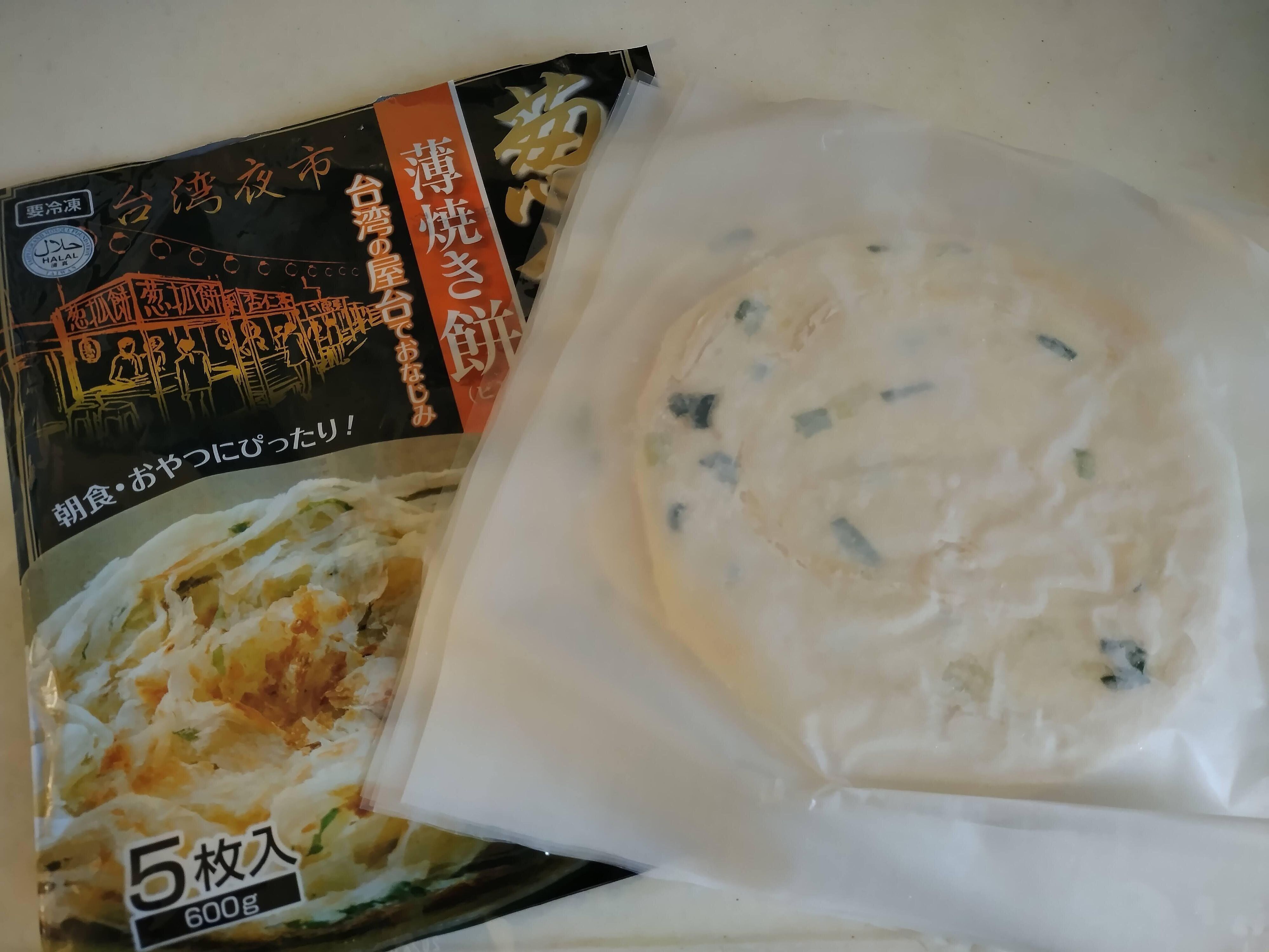 業務スーパーで販売されている薄焼き餅は、台湾の屋台料理「葱抓餅(ツォンジュアビン)」を急速冷凍したものだそうです。