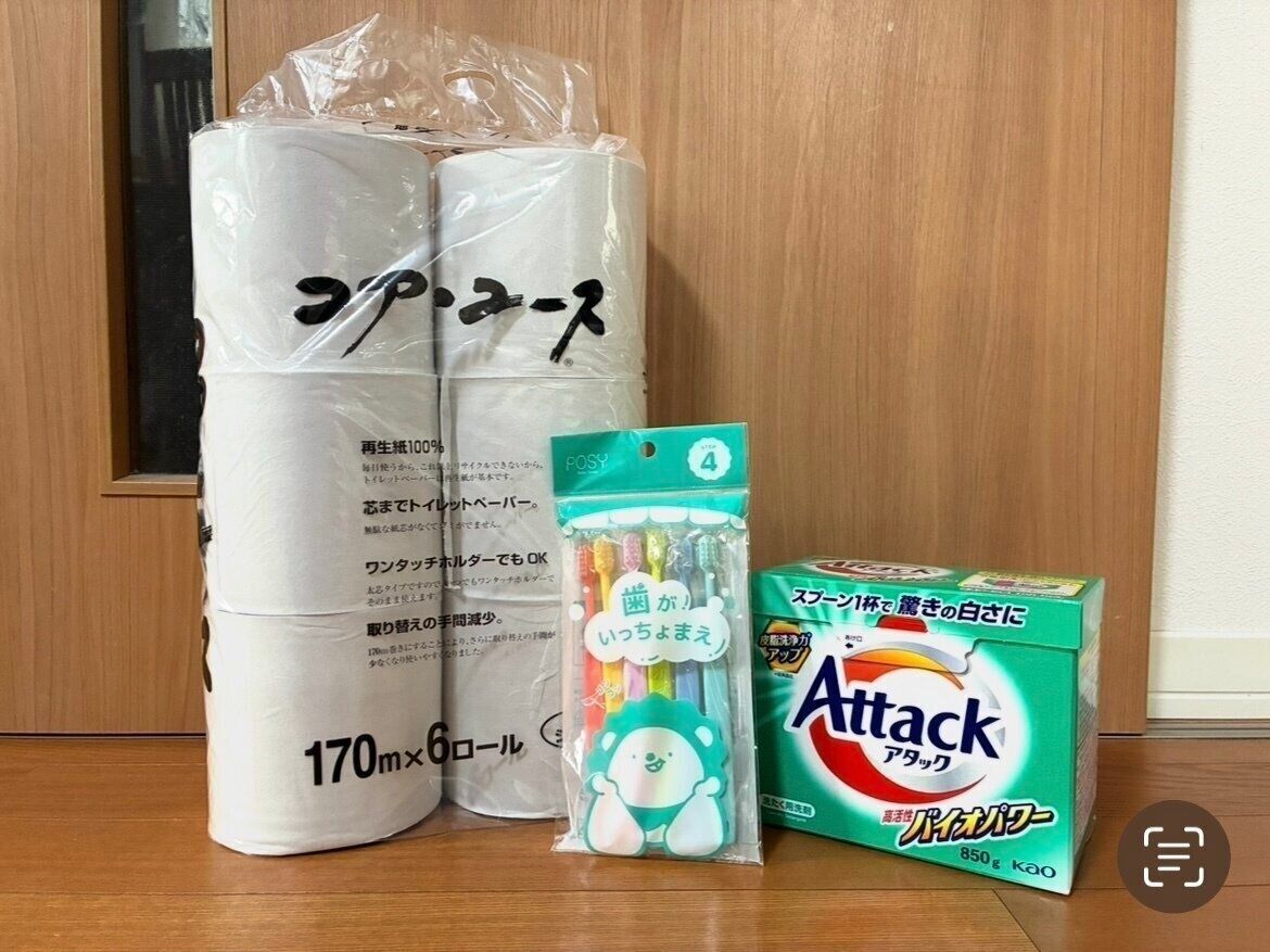 筆者が続けているのは、複数本入りの歯ブラシやシングルロールのトイレットペーパー、粉洗剤といった「コスパと実用性の両立」を意識した選び方。複数入っている商品を買うことで単価が下がるだけでなく、買い足しの手間や時間も減らせます。