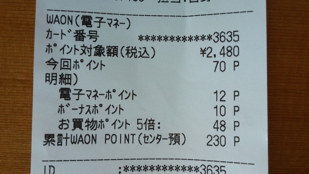 イオンの電子マネーWAONを利用して賢くポイントを貯めているみつままゆみさん。WAONは200円分の買い物で1ポイント貯まり、1ポイント=1円分として利用できます。ポイント5倍デーの10日に買い物したり、ボーナスポイント対象商品を購入して、より多くポイントをゲット!貯めたポイントは外食などに活用しているそうです♪