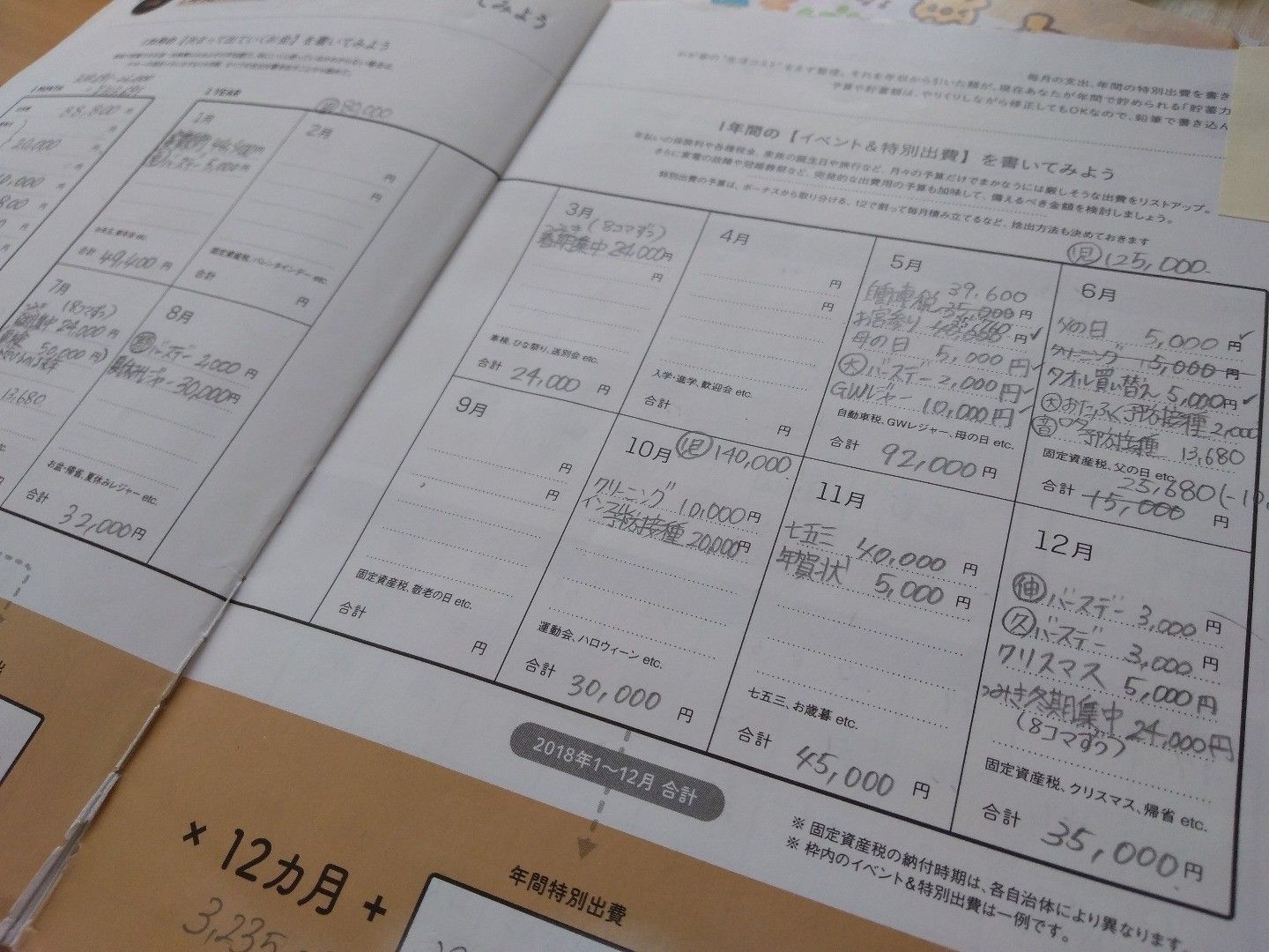 年末時に翌年の年間特別出費を予算立てして、毎月23,000円ずつ積み立てているというNagomyさん。夏休みのレジャー費や習い事の講座費用、家賃更新費用など、あらゆる出費をこの積立金から出しています。多めに予算を立てることで、使い過ぎなどの不測の事態が起きても対応できて、おすすめだそうですよ。