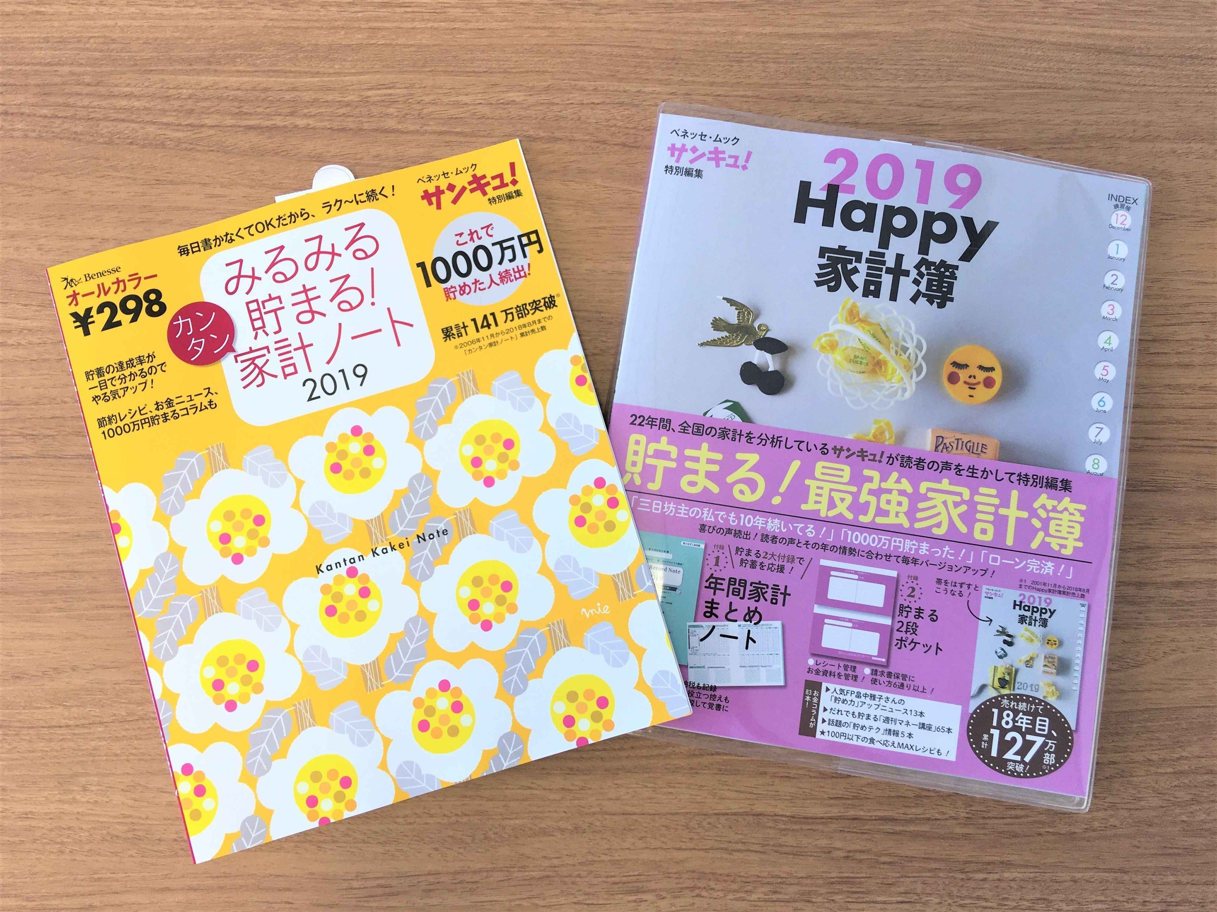 雑誌『サンキュ!』から人気の家計の『Happy家計簿2019』と『みるみる貯まる!カンタン家計ノート2019』が好評発売中!! 今年度版は、さらに最新情報を収録してパワーアップしています。