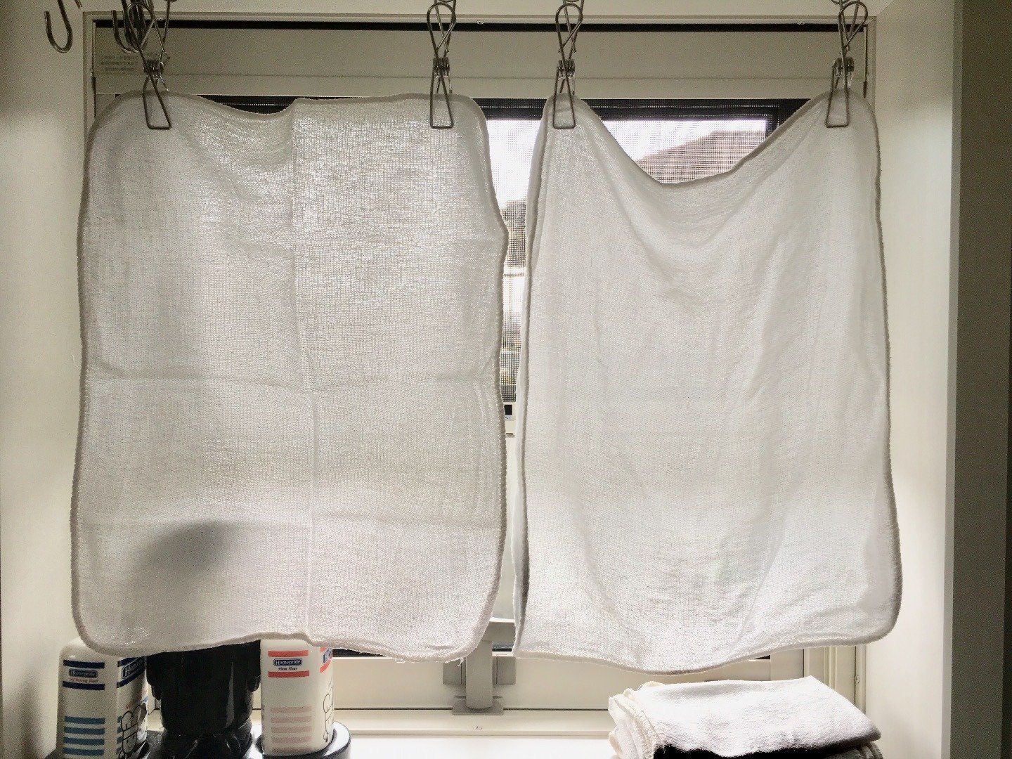ここゆきさんが愛用しているのは、無印のわたおちふきんです。キッチンのお皿拭きに使用し、濡れたふきんは同じく無印のワイヤークリップに挟んで乾燥させます。ガンガン洗って、汚れてきたら過炭酸ナトリウムを入れた熱湯で除菌・漂白。クタクタになる頃が1番使いやすいそう。キッチンのインテリアになじむ、シンプルな見た目もポイントです。