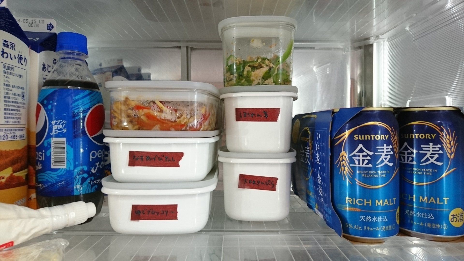 いまむらみほさん宅では、どこに何があるか分かるよう、収納する食材を棚ごとに種類分けしています。1段目は飲み物のストック、2段目は極力空にし、残りものやその日使う食材を入れるようにしているそう。早めに使い切るものや毎日食べるものは下の段に入れ、取り出しやすくするための工夫もしています。
