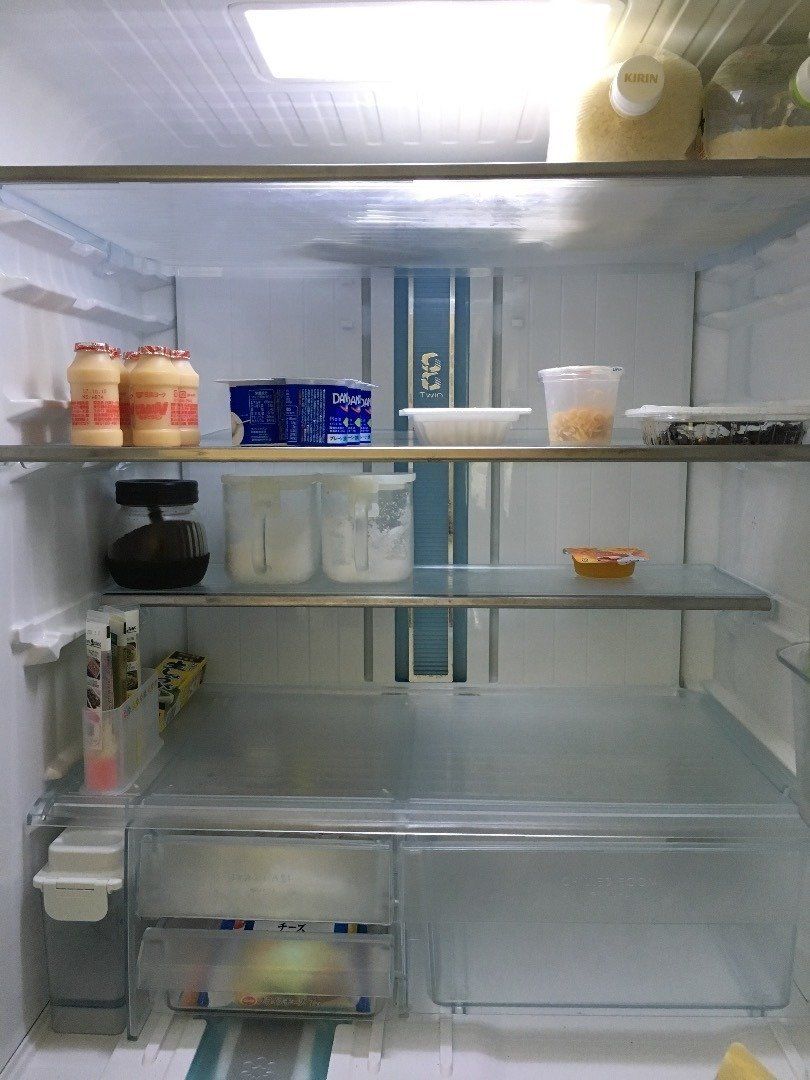 買い出し前ではないにも関わらず、とってもスッキリとした冷蔵庫内。モノの管理が苦手というきょろさんのモットーは「物を増やさない」&「使い切る」。仕事帰りに500円分だけ食材を買います。そして期限が近いものは冷蔵庫の下段に入れ、使い忘れを防止しています。調味料は必要最低限に。管理の手間も省ける上、冷蔵庫内の掃除も楽になりました。