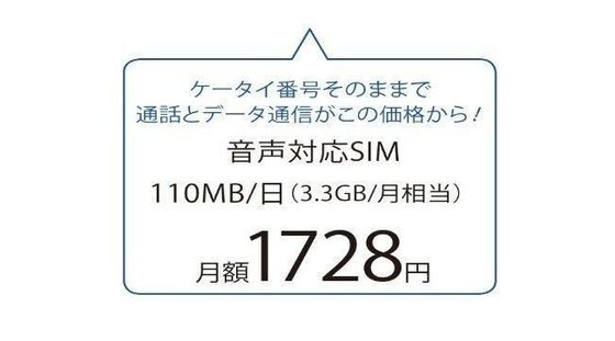 妻:音声対応SIM 110MB/日コース(3.3GB/月相当)⇒月額1728円