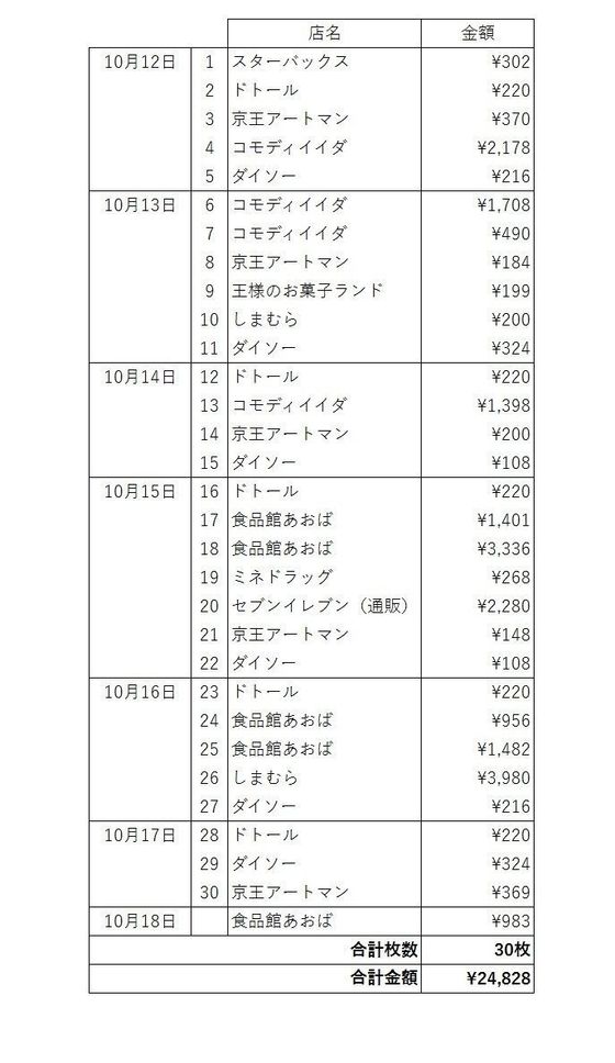 大上:それはかなりのギャップですね。ちなみに、1週間の合計金額は24,828円でしたが、この金額はだいたい想定内でしたか?
