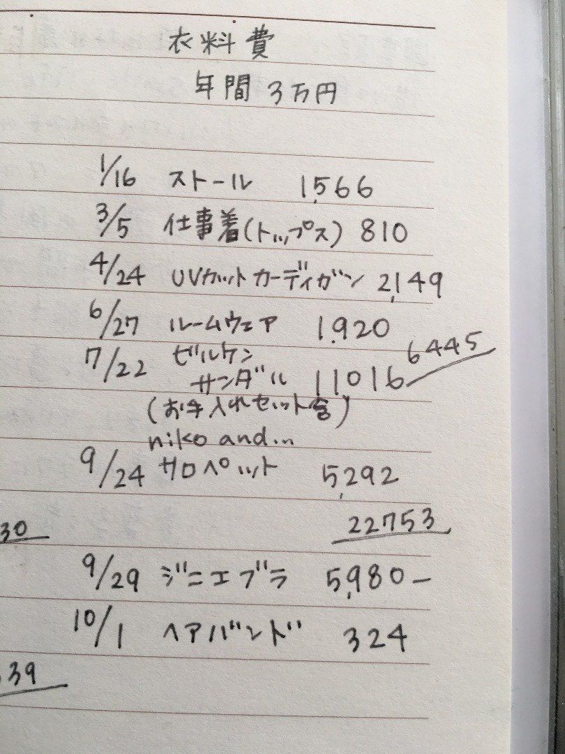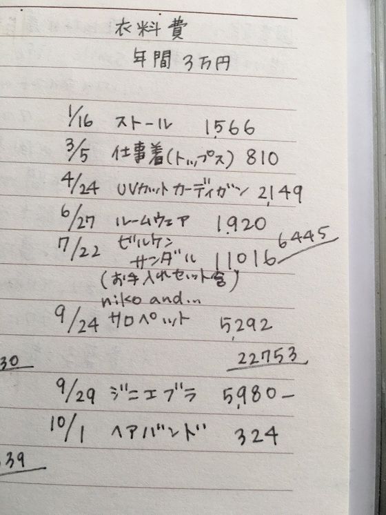 ここゆきさんが被服費の節約のために取り入れたのが「年間予算制度」。手帳に被服費のスペースをつくり、日づけ・買ったもの・金額を記入しています。年間を通して買い物計画を立てる必要があるため、目先の衝動買いが減ったそう。また、洋服を買うことにとても慎重になり、持っている洋服はすべて現役で着倒しています。