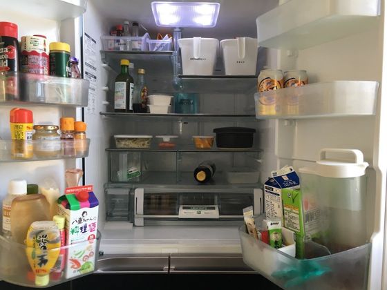 冷蔵庫の見通しをよくするよう心がけているここゆきさん。「こまごまとした食材はトレーにのせる」「いっしょに使う食材をひとまとめにする」「保存容器や食材は前後2列までに収める」などのルールを決めて使い忘れを防いでいます。それにより冷蔵庫に入れる量がセーブできるため、電気代の節約や食材の買い過ぎも予防できるそうです。