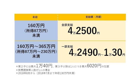 「児童扶養手当」には所得制限が設けられています。所得に応じて基本の支給額から減額されるので、申請するときに市区町村の役所で確認してください。
