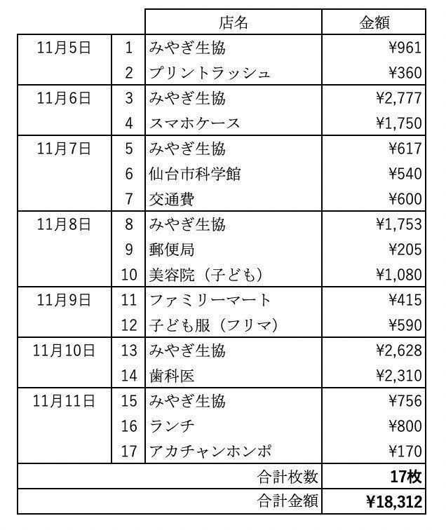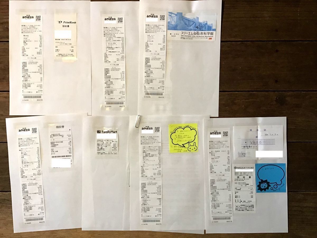 ※一部レシートがないものはメモを参考にしています