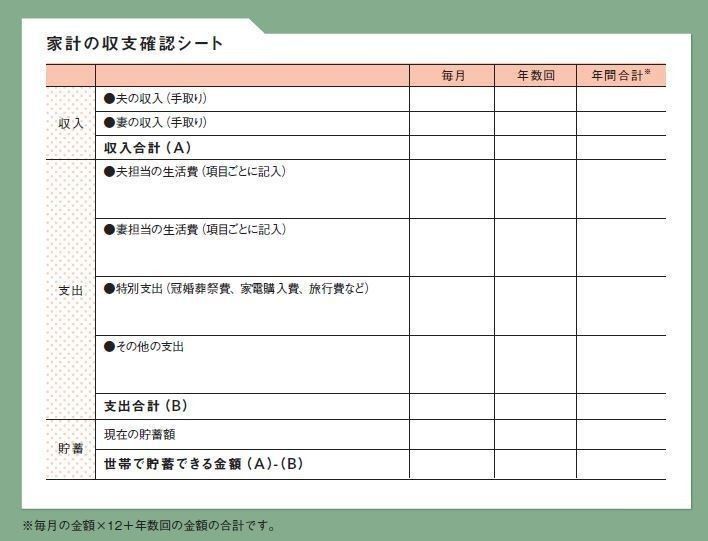 共働き夫婦の場合、「住居費と公共料金は夫の担当、食費は妻の担当」など担当分だけざっくり決めて、残りは各自が自由に使うというケースが多いようです。お互いの収入や支出がわかっていないと、計画的に貯めることはできません。まずは、今わが家全体の収支がどのような状況になっているか、確認することから始めましょう。