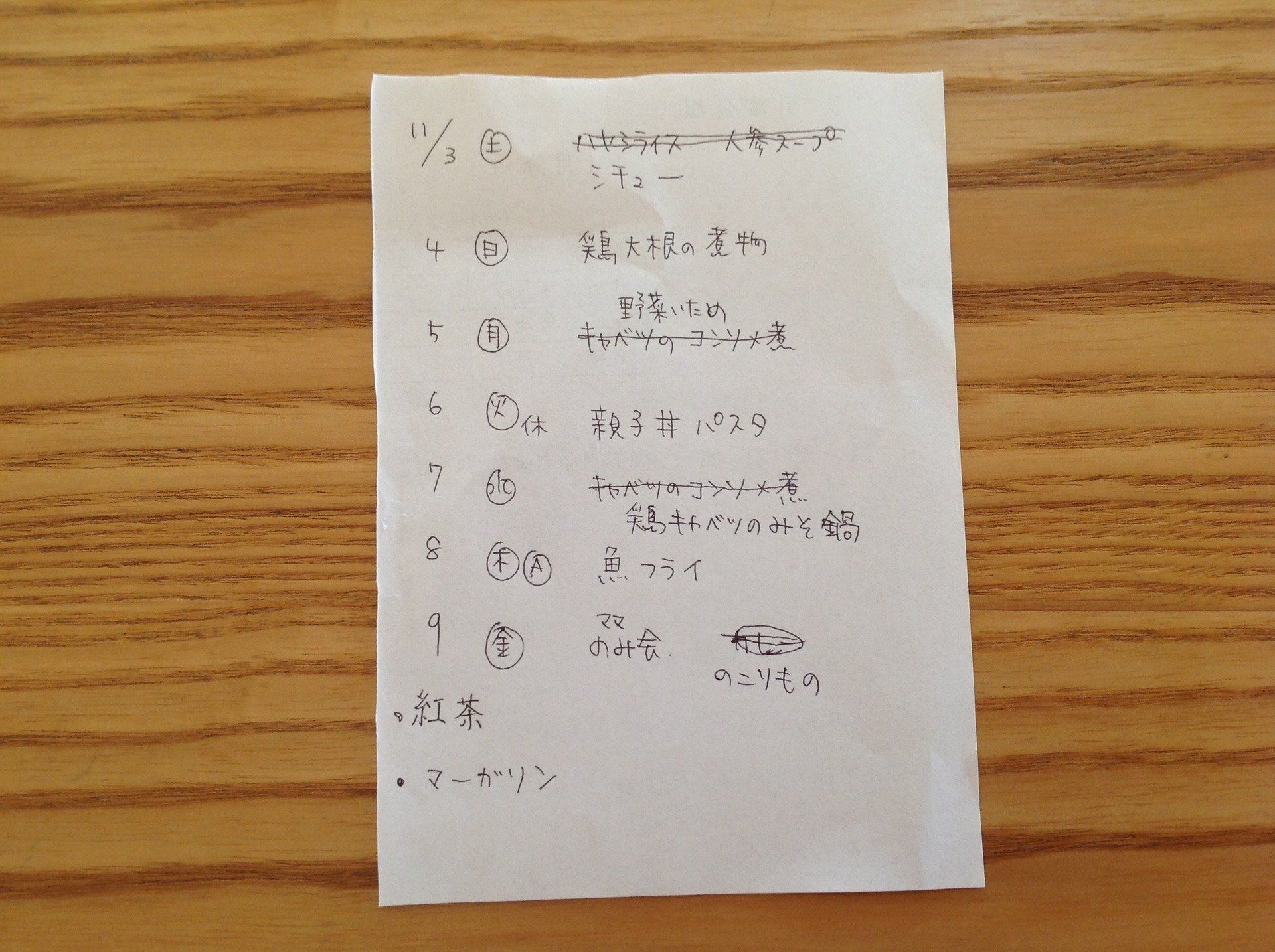 1週間分の献立をまとめて考えるようにしている、ひいらぎりおさん。その献立ルールは、メイン料理を魚・豚肉・鶏肉でローテーションを組み、雑誌などからピックアップしたレシピをローテーションの順に並べるだけ!味や食材がかぶらないよう気をつけることはありますが、献立を立てる時間が大幅に短縮できたそうです!