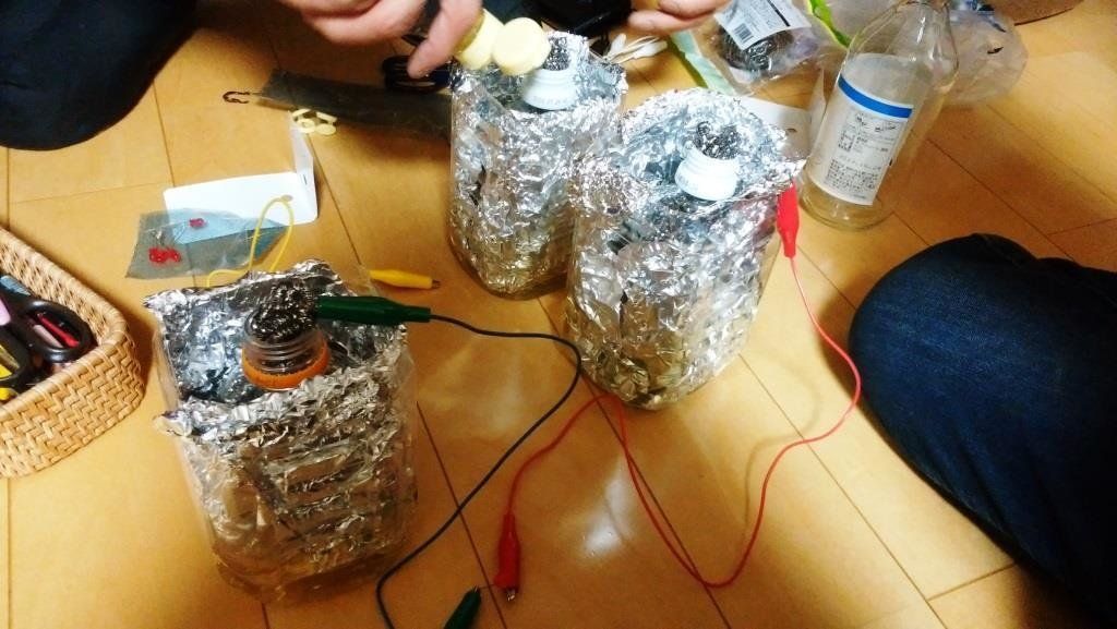 子どもが自宅で遊ぶアイテムはテレビゲームだけじゃありません。この日はお酢を使った発電実験。ほかには空き缶などでわたあめマシーンを作ったこともあるそう。親と一緒に何かをつくるという行為だけでも、子どもって喜ぶものですよね。集中力もつきそうです。