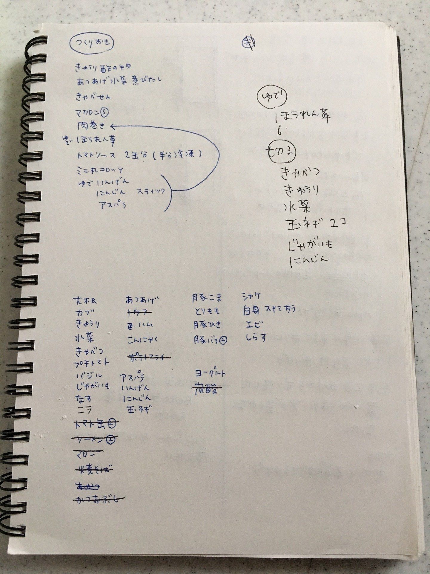 こちらは中野めぐみさんの秘密のノート。無印良品のもので、献立や常備菜、買い物リストなどを記入しています。レシピやつくりたい料理なども書いてあり、とっても頼りになるこのノート。思ったことや感じたことなど1日を振り返り、頭の中を整理するために活用しているそうです。文字にするとムダなく食材を活用できそうですね!