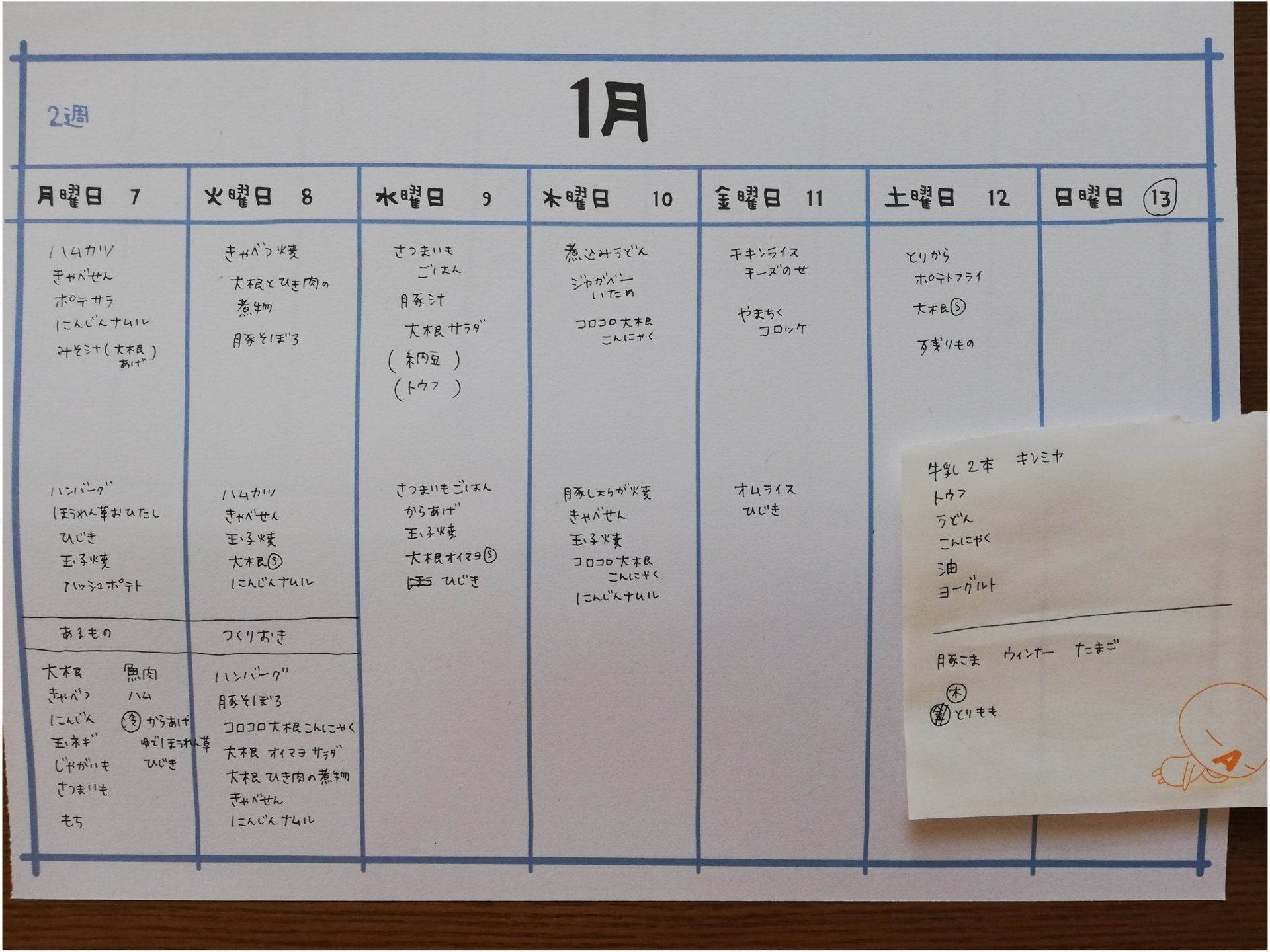 いつも週末に翌週の献立をたてる中野めぐみさん。おかずと白米だけの献立にすると、大量におかずを食べてしまうので、常備菜とお味噌汁を加えて満足感を出すことで、この週の食費はなんと5,000円以内におさえたそう。1週でも食費が抑えられると、月の食費管理が楽になりますね!