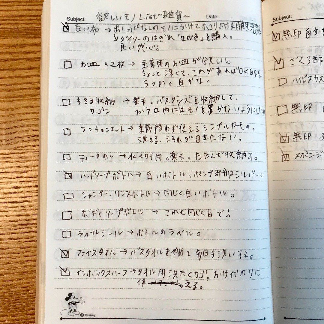 商品を見てしまうと、やっぱり欲しくなってしまうもの。そこでちぃこさんが、衝動買い防止策として考案したのが「書くこと」だそうです。なぜ買うのか?そこまで欲しいものなのか?実際に脳内だけでなく文字にすると、より考えがクリアになって衝動買いを防いでくれるとのこと。