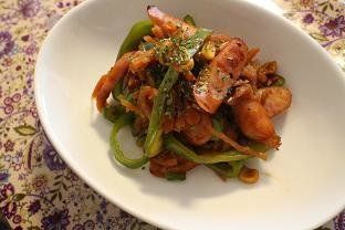 野菜がたくさんとれる健康的なメニューが印象的な、にいかわみかさん宅の食卓。副菜で目を引いたのが、切り干し大根をリメイクしたおかずです。ピーマンとウインナーを炒めたところに、切り干し大根の具材を加えてケチャップで味つけしたもの。材料費は80円。ウインナーとケチャップ味で、子どもにも好評だったそうです。
