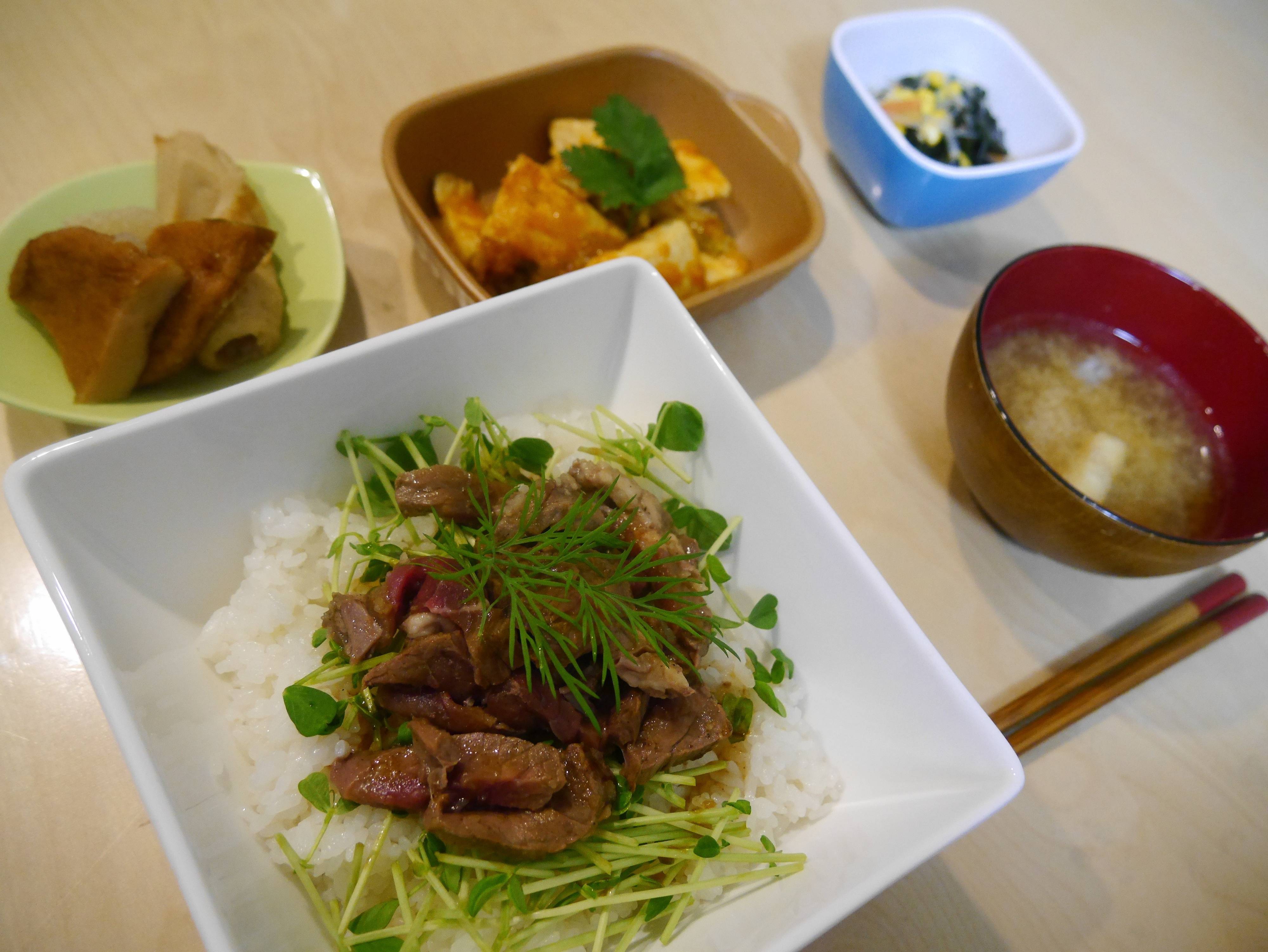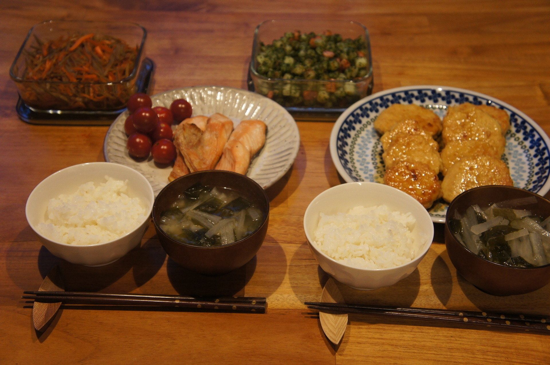 夫と娘の3人家族のユッカさん。この日の夕食は、ユッカさんも大好きな和食の献立でした。メインのつくねの照り焼きは、100g48円の鶏ひき肉でつくった節約メニュー。かかった材料費は約200円なので、1人前約70円とのこと。残ったら翌日のお弁当にも活用できるこのおかず、今後はユッカさん宅の定番になりそうです。