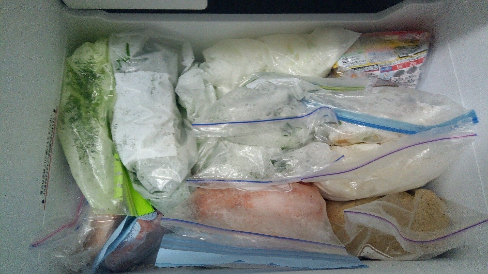 2つのスーパーを隔週でまわって、約6,000円分の食材をまとめ買いしているひいらぎりおさん。買った食材を余らせず使い切るために、お肉や野菜をあらかじめ、小分けにして冷凍するようにしています。こうすることで食品ロスを防げるだけでなく、カットや計量などの下準備を時短できるのだとか。
