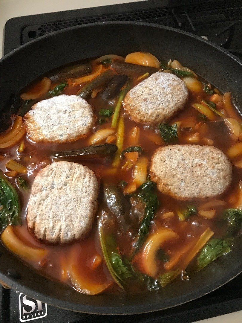サンキュ!ブロガーぐー子さんが購入するのは、冷凍ハンバーグ。お弁当にも、夕食のメインとしても使えるうえに、煮ても焼いてもOKというマルチさがコスパの高さにつながってますよね。この日は煮込みハンバーグ。野菜もいっぱい入れているので栄養バランスも安心です。