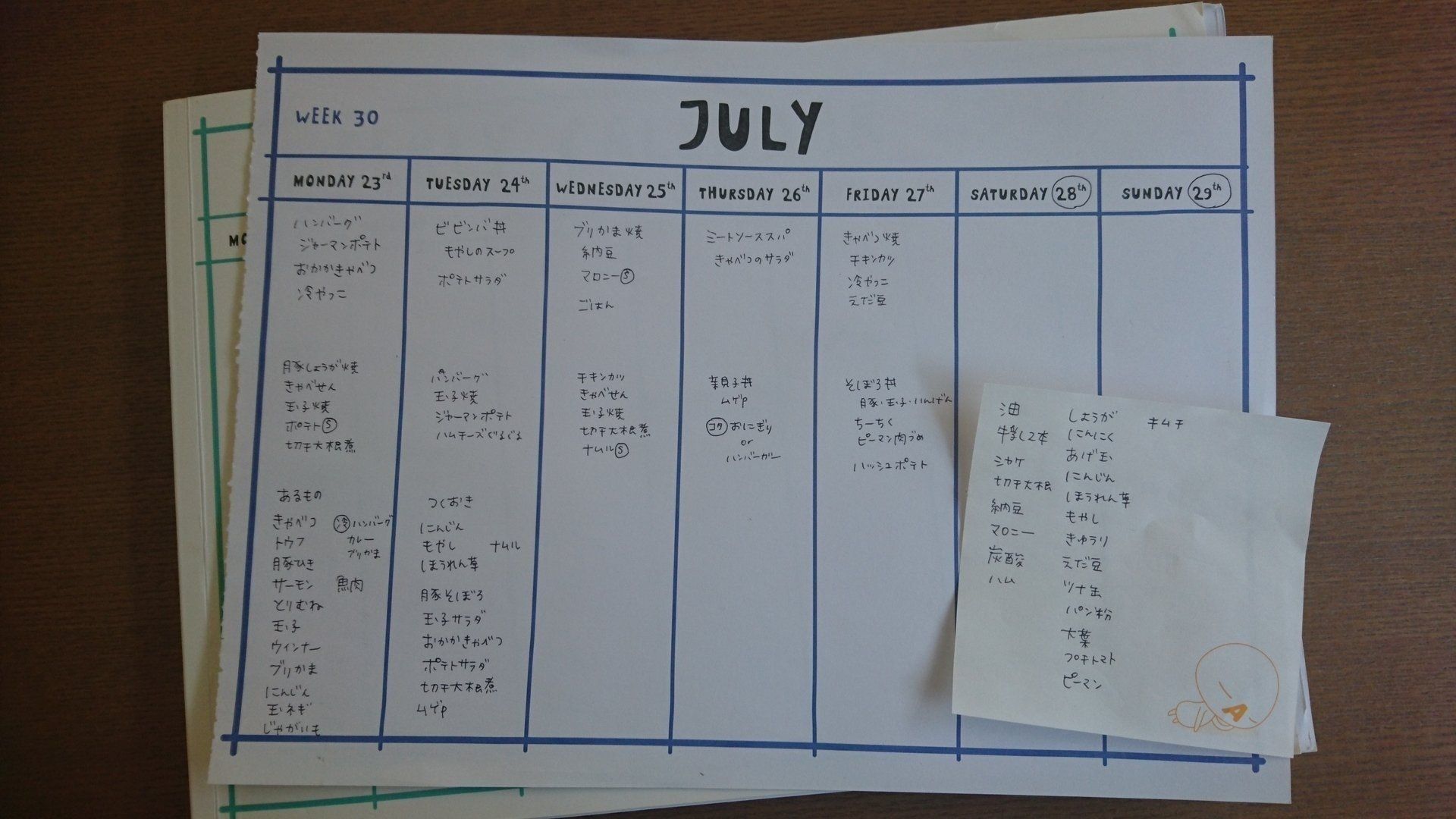お弁当分も含めた1週間分の献立表と、買いものリストを作成してから買いものにでかけるという、中野めぐみさん。献立と買いものリストがあることで、計画的にまとめ買いができるのだそうです。購入した食材は、冷凍庫の残り食材とあわせて常備菜に!残りものを優先的に使うことで、食材もムダにせずにすみますね。