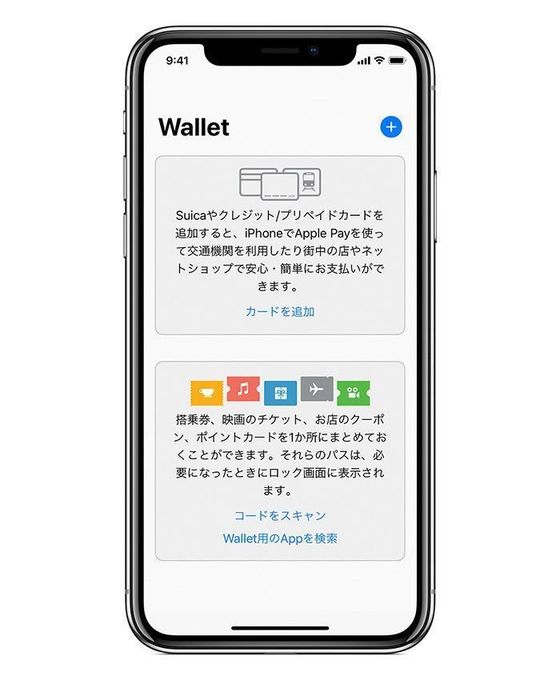まずは、クレジットカードなどの対象のカードを用意。iPhoneに元々入っているWalletアプリを開きます。
