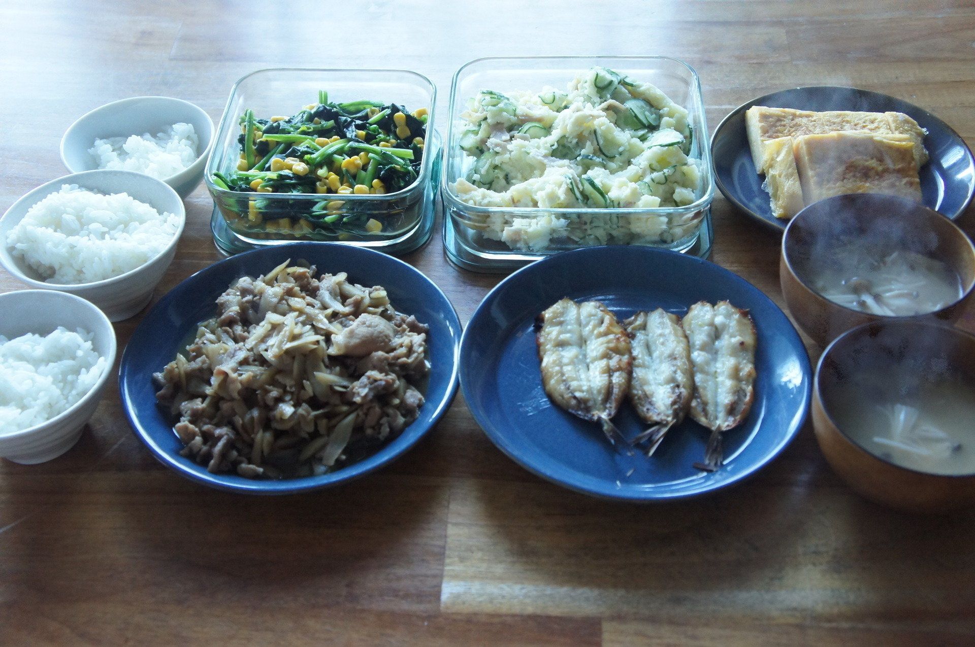 常備菜に助けられているというサンキュ!ブロガー中野めぐみさんは、スーパーで見つけた50円のしめじをバター焼きにしたそうです。シンプルな味付けの常備菜は安心する味ですね。他にもゆでるだけの野菜で色味も◎。