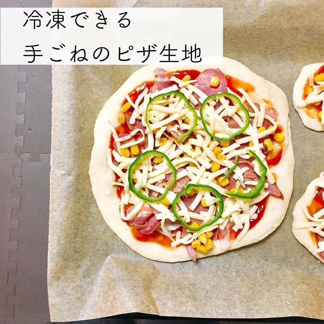 強力粉と薄力粉を入れたボウルの角に塩、反対側にイースト液を注ぎます。ひとかたまりになるまでこね、オリーブオイルを足してさらにこねます。40度で50分発酵させ、ガスを抜いて好きな大きさで丸め20分ベンチタイム。綿棒で0.5mmの厚さに丸く広げ、フォークで穴をさしたら200度で5分焼きます。冷凍も可能だそうですよ。