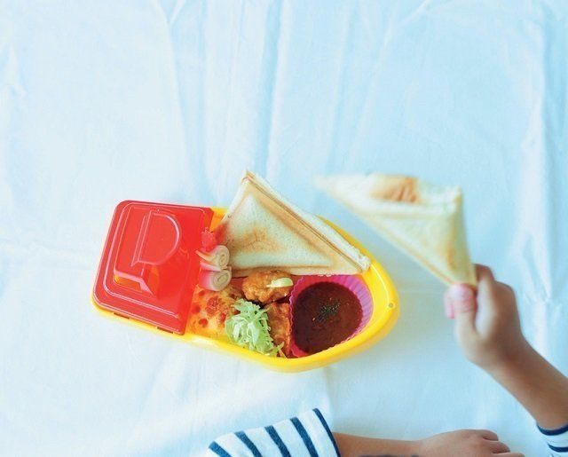 100均のおもちゃの船をプレート代わりにして盛りつけたら大ヒット!「見た目さえ楽しければ子どもは喜ぶ。中身はカレーの残りや冷凍チキンなど、ありものでも平気です(笑)」