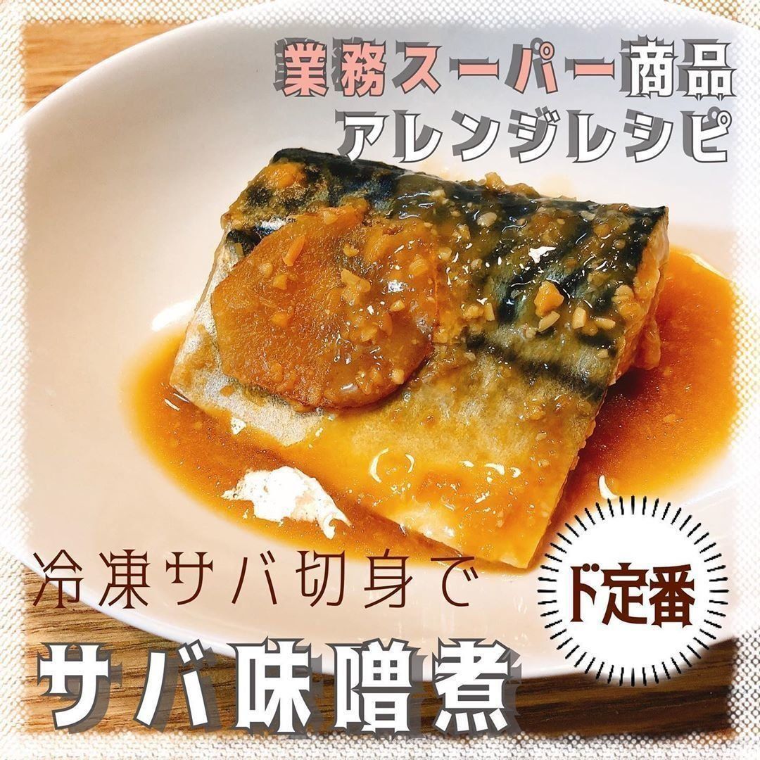 業務スーパーの冷凍サバ切り身でサバ味噌煮をつくったmayu.kakei_28さん。一袋に5切れ入っていて、冷凍で保存できるのがうれしいポイント。サバ切り身は脂がのっているので、煮付けるとふっくらやわらかな食感を楽しめるそうです。
