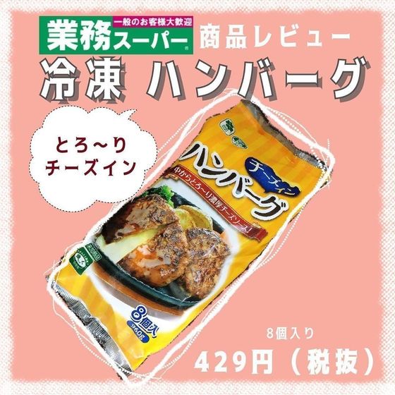 さらにmayu.kakei_28さんは、チーズインの冷凍ハンバーグを購入。国内製造で、1個あたり約58円!サイズは直径10cm、120gと大きめなのが特徴です。中のチーズはたっぷり入っていて、凍った状態のままフライパンで焼いても、きれいな焼き目がついたそうですよ。