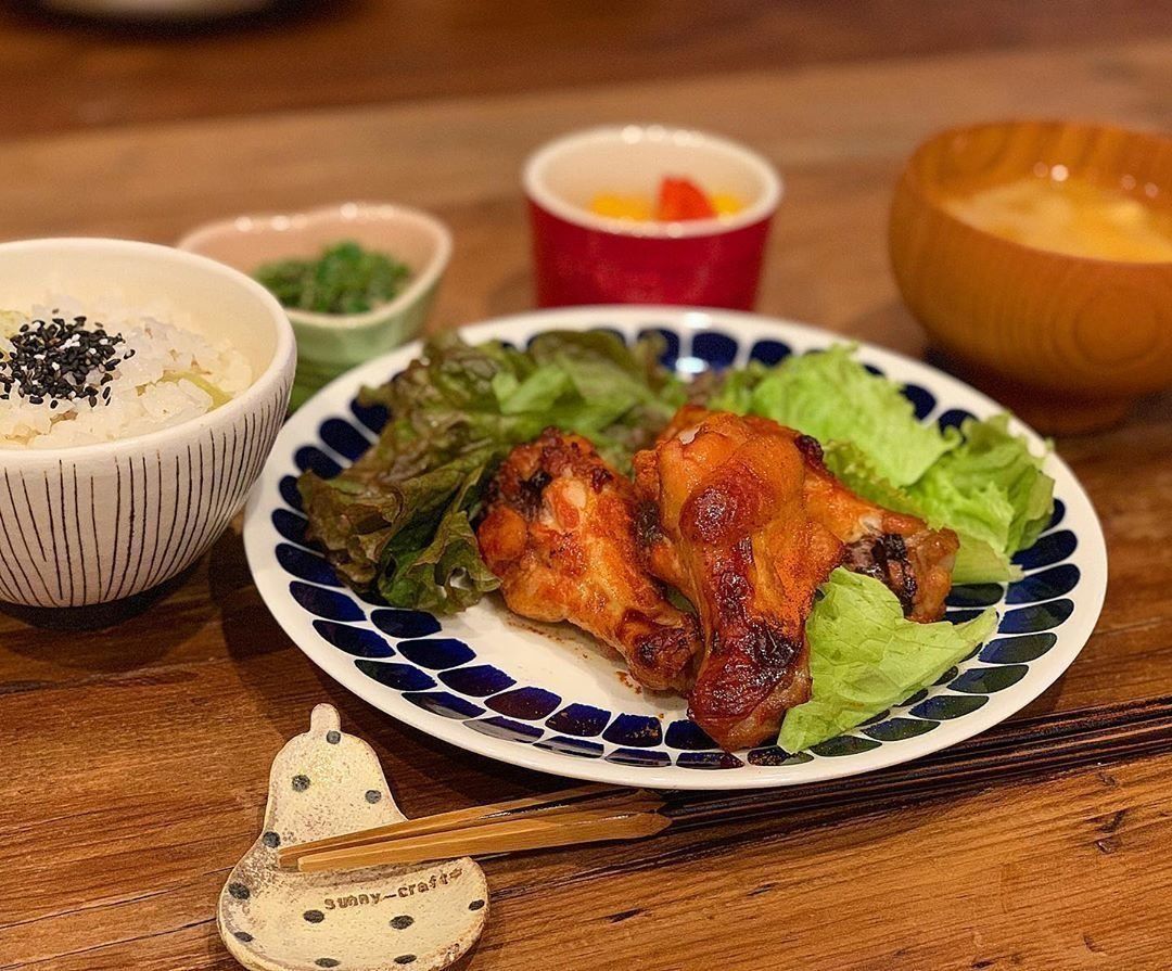 ほかにもnaochiintoさんは、グリルチキンをつくりました。ケチャップと中濃ソース、オイスターソース、にんにく、砂糖、みりんを混ぜて手羽元に漬け込みます。漬け込んだお肉をオーブンで焼いたら、バーベキュー味のグリルチキンの完成。大人用にはチリパウダーをかけて辛味をプラスしています。
