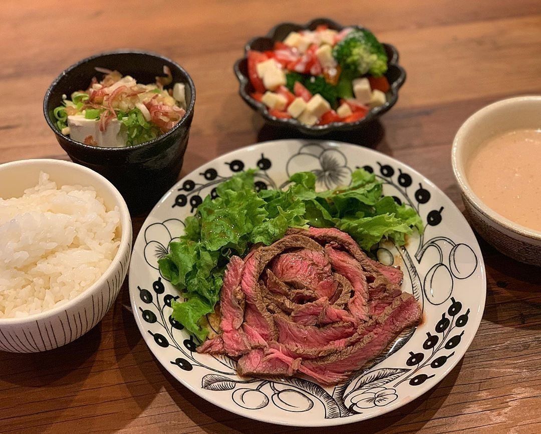 鰹のたたきとキャベツの塩にんにく蒸し、焼肉のタレとマヨをかけた豆腐をつくったnaochiintoさん。副菜のキャベツは塩、にんにく、鶏ガラの素、ごま油を電子レンジで温めたら完成。メインと味を被らせないために、豆腐は焼肉のたれとマヨで風味に変化を加えたそうです。