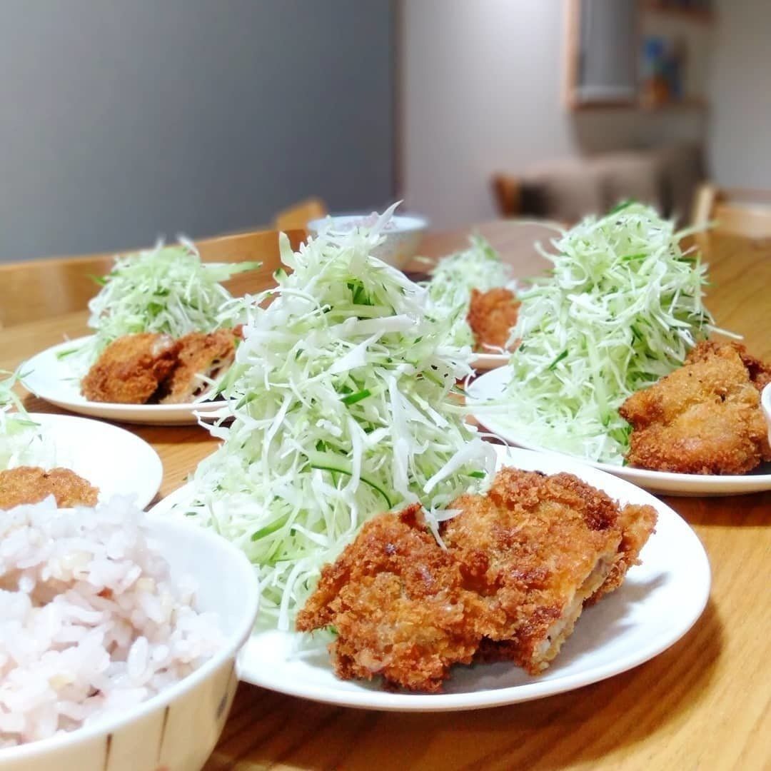 家族みんなで晩ごはんをつくったitsumi.nakashimaさん。特売の豚コマを重ねてつくるミルフィーユかつは、みんな大好きなのだとか。きゅうりとキャベツを千切りにした生野菜サラダとお味噌汁を合わせても、414円とワンコイン以下なのは驚きです!