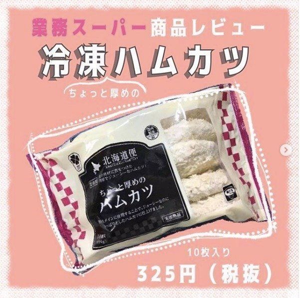 業務スーパーの冷凍ハムカツはちょっと厚めでジューシー!10枚入りでとてもお得なので、お弁当のおかずとしても最適です。