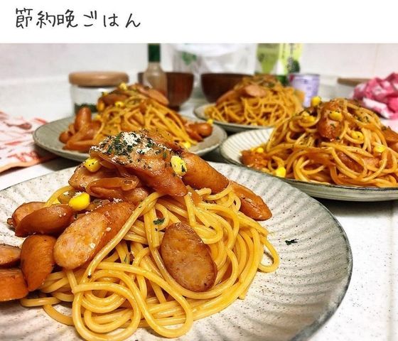 さらにmegum.nakanoさんは、木曜日は麺類というように、曜日ごとに献立をルーティン化しているそう。日々、献立決めに頭を悩ます必要がないので楽ですね!とくに疲れていたこの日は、具材をソースで煮つめてパスタとからめるだけの、簡単ナポリタンをつくったそうですよ。
