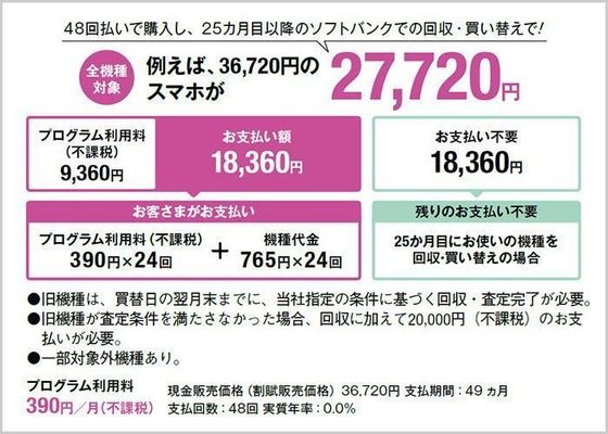 ソフトバンクの「トクするサポート」は、最新スマホが超おトクに持てるサービス。毎月390円のプログラム利用料(不課税)を支払い、25カ月目にスマホを買い替えることで、残りの支払いが不要に。長期で使うより、2年おきに買い替えて、常に最新スマホを持つほうがおトクなんです!