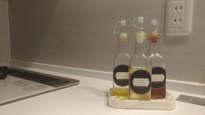 ほかにも、ひいらぎりおさんは100均のキッチングッズも愛用しているようです。ビネガー&オイルガラスボトルは、中身が少量ずつしか出ないため油の出しすぎ防止に繋がっているのだとか。オイルボトルに酒やしょうゆなども調味料を詰め替えて、こちらも出しすぎ予防に繋げているようです。