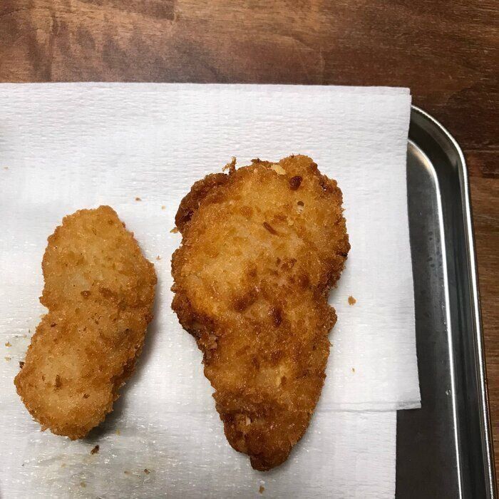 形やサイズは不ぞろいですが、小さいものは子ども用にカットしなくてもいいため、かえって楽なのだとか。下味もついているので、揚げるだけでもおいしいそうですよ。