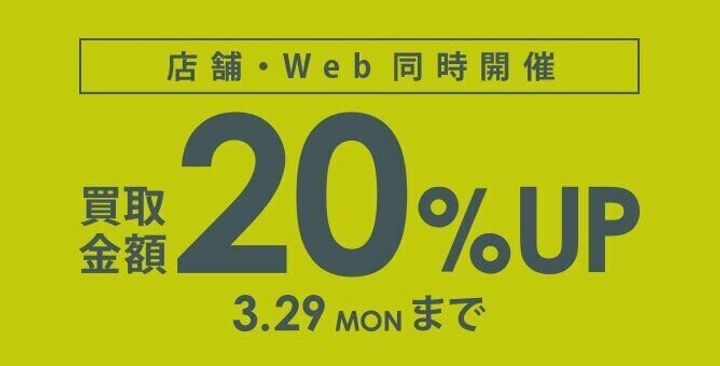 3/29(月)まで!買取金額20%アップは店舗でもWEBでもOK♪