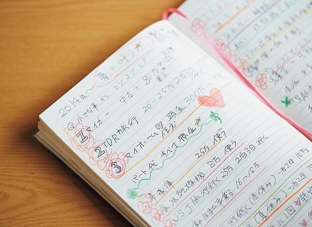 〝夢ノート〞には、「使う」「行く」と言い切りで記入して、実現度をUP!「かなったものに花丸をつけ、夫に見せると驚かれるので、それが見たくて頑張っています。