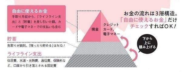 忙しいを言い訳にせずに、お金の流れを整理しましょう。「でも、家計簿を細かくつけたりするのは大変」と敬遠しがちですが、住居費などの「固定費」と「貯蓄」を固定化すれば、見るのは「自由に使えるお金」だけ。カード払いも含めて、食費や日用品、小遣いなどの支出をすべてこの「自由に使えるお金」の予算内に収めることさえ守ればいいのです。