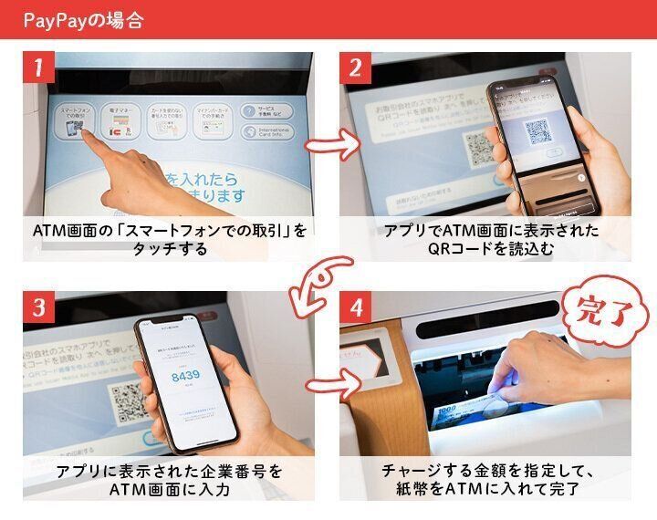 4.チャージする金額を指定して、紙幣をATMに入れて完了