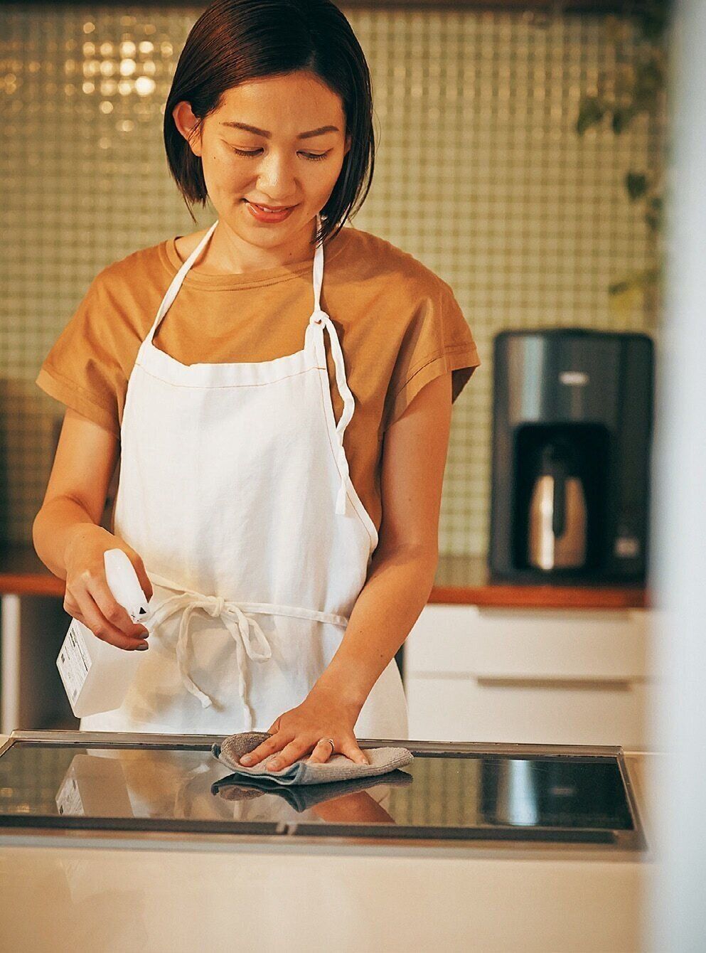 【17:30】夕食のあと、キッチンを拭き掃除。汚れをため込まない