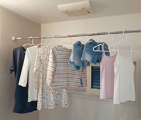 「天候に左右されず、いつでも干せる浴室乾燥を利用しています」。入浴中に洗濯機を回して、夜のうちに干してしまえば、朝の時間にゆとりが。