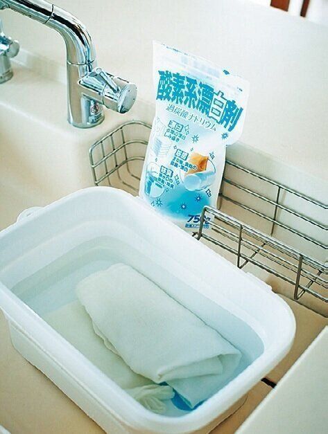 ふきんや排水口などのカビ予防のため、つけ置き漂白を。「前に漂白したのいつだっけ?と忘れないように、カレンダーでチェックしています」。
