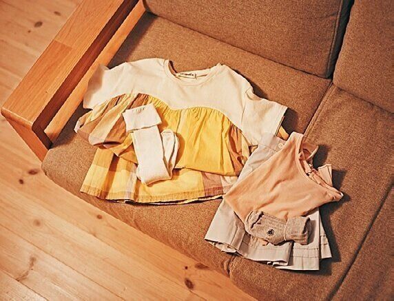 明日着ていく子どもの服を夜のうちにセット。「天気予報を見て、雨なら汚れてもいい服など、朝になってからバタバタしないように準備をしています」。