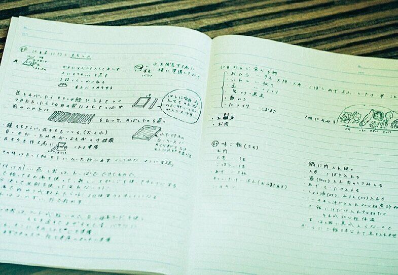 寝る前に、新しく覚えた料理のレシピや、義母から教わった家事のコツなどをノートに書きます。「同じことを調べたくないので、なるべく1回で習得して、貴重な毎日を大切に過ごします」。