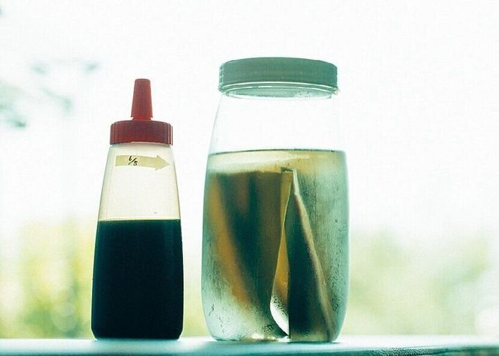 毎回計るのが面倒だから、しょうゆ、みりん、酒を、1:1:1で調合。「レシピによって、必要な調味料をたします。2週間で使い切れる量だけ作り置き」。